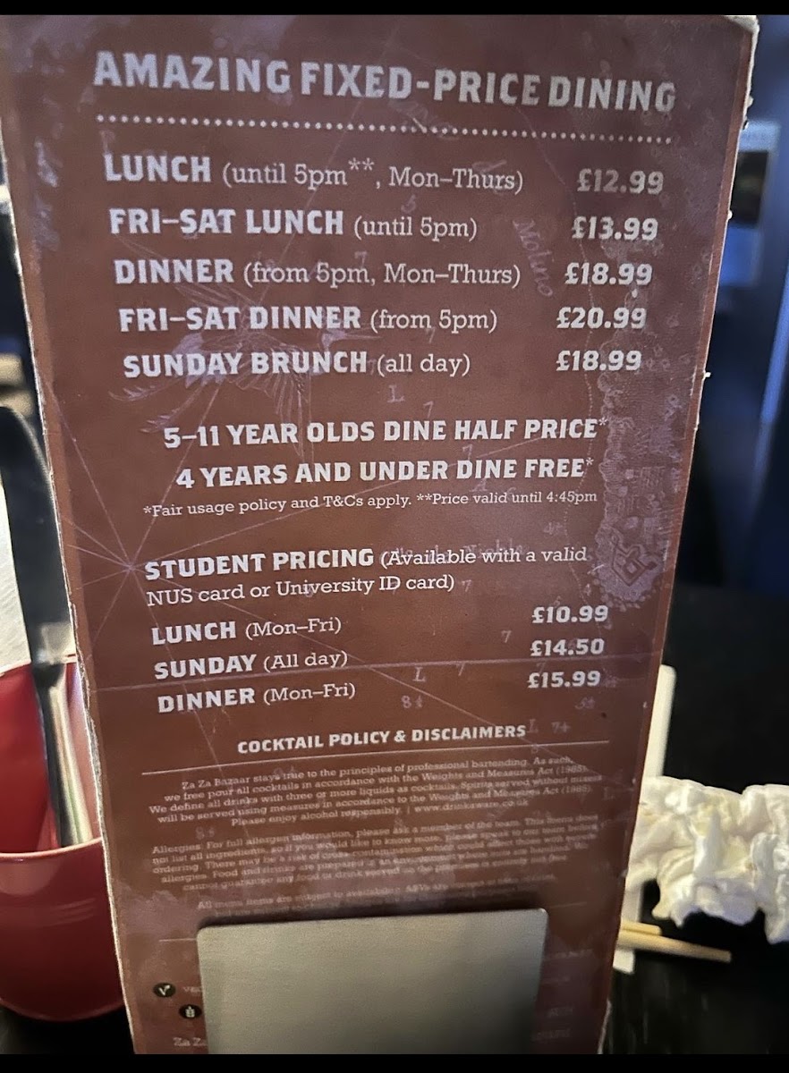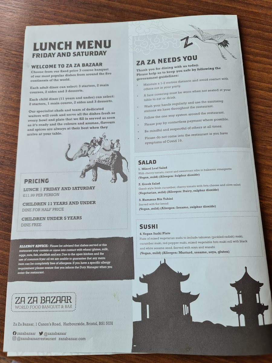 Za Za Bazaar, located at Canon's Rd, Bristol BS1 5UH, United Kingdom, is an exceptional dining experience offering an extensive and diverse menu that caters to all tastes. Known for its all-you-can-eat concept, the Za Za Bazaar menu brings together a fusion of global flavors that span across Chinese, Indian, Italian, Mediterranean, and British cuisines. The beauty of this restaurant lies not only in the vast variety of dishes but also in the high quality and freshness of the ingredients used.